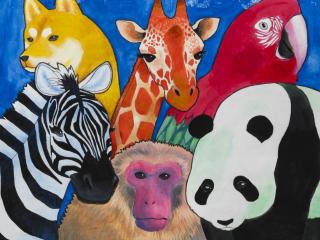 アクリル絵の具による手描き作品のパーツをデジタルコラージュして